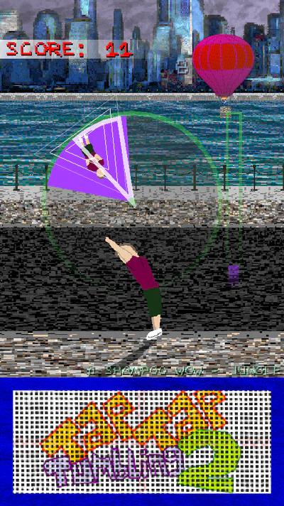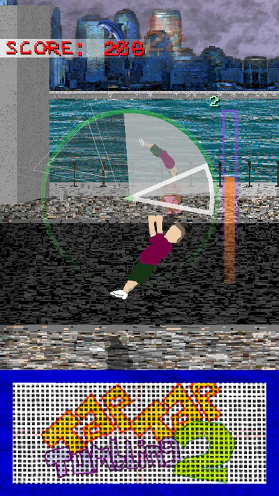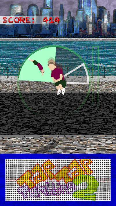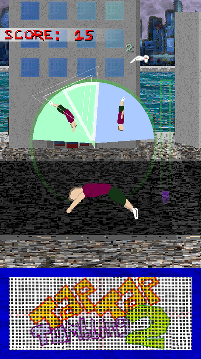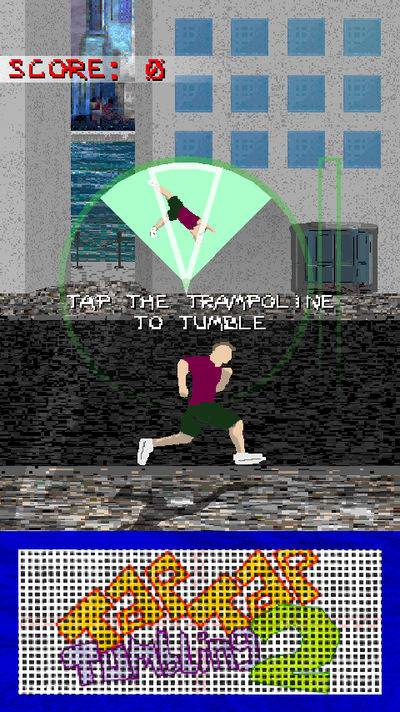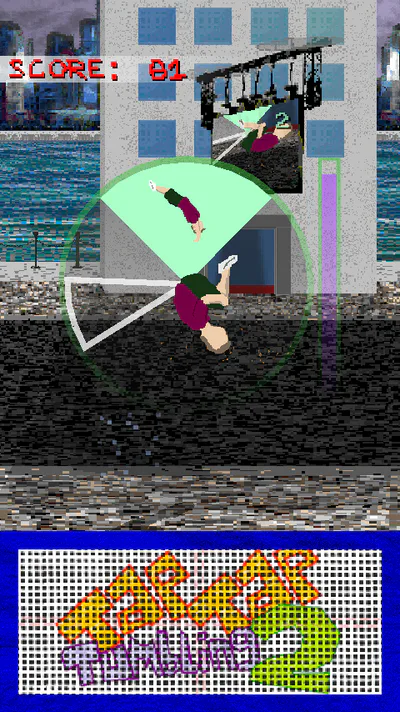 Tap Tap Tumbling 2 is a fast paced endless tumbling experience. Hit the trampoline in time with the dial to perform complex acrobatics. You play as an anonymous free-runner who fearlessly executes insane backflips, frontflips, and other flips, twists and tricks on the concrete streets. Try and get a high score, aim for a global top rank and see what else you can interact with along the way!
