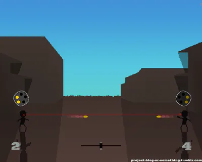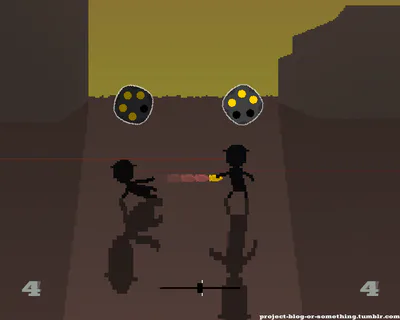 The concept of Ten Paces is straightforward. 2 players shoot at each other with limited ammo. Each movement or dodge brings them closer to their opponent. First player to hit the other wins.