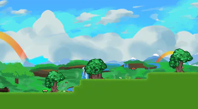 cute art style, digital painted sprites and environments