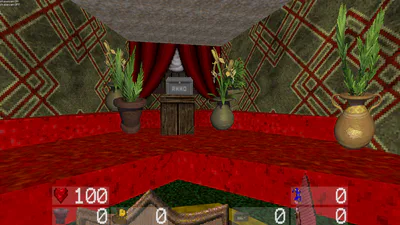 you explore a haunted mansion full of giant disembodied lips, TV with legs, angry books, and other things trying to kill you for no reason whatsoever, but don't worry because you have your trusty weaponry and magic!