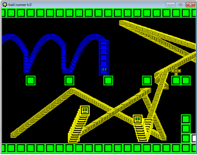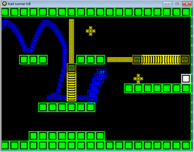 This is what happens when you don't double buffer, kids! The movement is stiff, having jump being mapped to up is annoying, level 4 is impossible due to the enemy AI having no distinct patterns and you not being able to fight back. But hey, if you use your imagination, it looks like your playing as a snake from, erm, Snake! I'll give it a rating if you finish it.