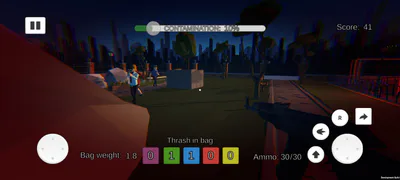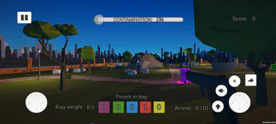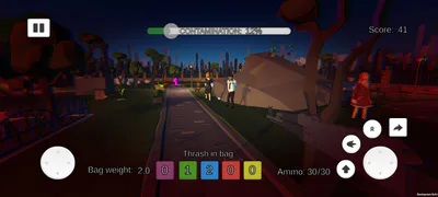 Trash Thrower is a first-person survival shooter where player fights off enemies while keeping the environment clean. The goal of the game is to survive as long as possible. Bad npc's that shoot at player or litter the world will make it harder and harder as the time passes. Player can get more points by throwing trash in appropriate cans and killing bad npc's. In the game there are also good npc's that just run around and if they die, the player loses points.