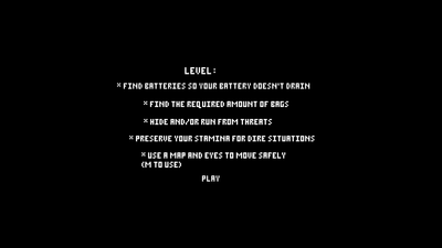 Walk around the map, collect bags and eyes (eyes are needed to see where the monster is in first person), and also try to avoid the enemy