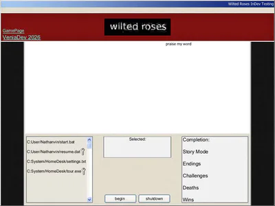 Wilted Roses is a operating system horror game that puts you in the shoes of teenager Nathan Vin, who's winter break has allowed him to seek temporary employment at a soon to be opened play-place and an opportunity to score big on a film class project. Little is he aware, he has an illness that only he will know of. An illness that will do everything to make him suffer through what's supposed to be a relaxed employment.