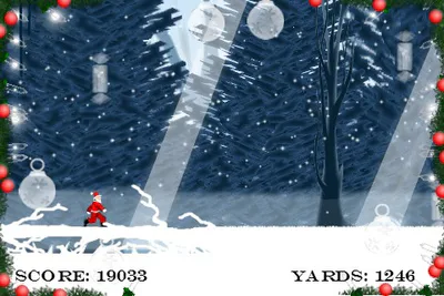 This is a game with a simple one button mechanic. Watch over Santa as he walks through a forest full of hazards. Hold down the left mouse button to avoid seeing the carnage when Santa is in danger and he will miraculously emerge unscathed. Your score only rises while you watch Santa’s progress, and the view becomes increasingly obscured by thorns.