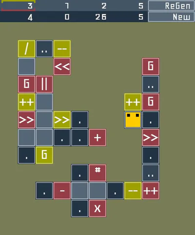 All levels are procedurally generated and may contain arithmetic operations (lots), conditional jumps, gates, and removable tiles.