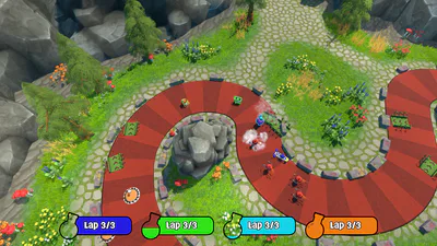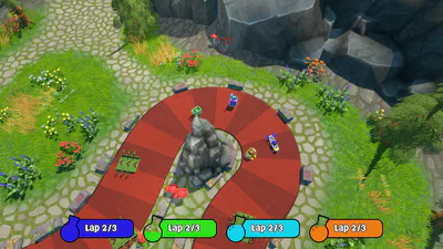 Take your pick of 4 different racing karts, and compete locally against your friends or computer players in wizard races, where you’ll summon horrific beings with strange powers to get ahead!