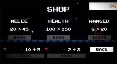 Upgrade your Damage, Health and Ranged Damage in Shop with the gold you earn from killing enemies, which are all saved incase you close your game.
