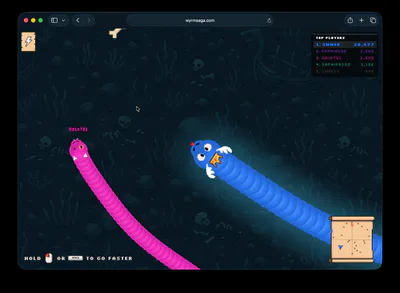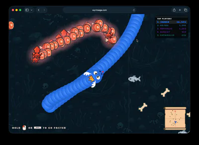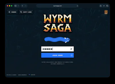 Wyrm Saga is a free multiplayer snake / worm arena game, where the aim is to grow as large as you can while battling up to 32 rival wyrms in real-time. Consume food and the guts of your slain rivals, find powerups and bonuses along the way.