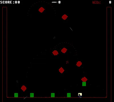 This is version 2.0. New weapons such as throwing knifes, uzi, and rocket launcher. Each weapon has a special ability, shotgun is your main weapon, unlimited ammo. The uzi can fire very fast, so that you can blast a whole lot of zombies! The throwing knives stay in the ground for a while when you throw them, so that zombie can fall into them and die =D. And the rocket launcher is the best. It's especially useful for clearing out an area with lots of zombies in it, if there's 100 zombies in a corner, shoot the rocket there and the explosion will kill them all! I found a little glitch, but I fixed it. Actually, I found the glitch about a month ago but kept on forgetting to fix it XD, now you don't stick to walls. I fixed the spawn system a bit. I actually managed to survive 2 minutes in extreme mode.A retro arcade platform shooter, greatly inspired by Super Ninja. A game i made in about 5 hours. This game was made with game maker 7 lite. if i had pro, this game could've took 2 less hours to make and maybe 2 MBs smaller. But it was worth it in the end because it's fun blasting those zombies! arrow keys or WASD to move. mouse to aim, left button to fire. 4 difficulties, ranging from easy to extreme.