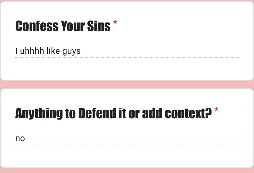 confess your sins https://forms.gle/sCWNBj6WqZ6zE7qN9