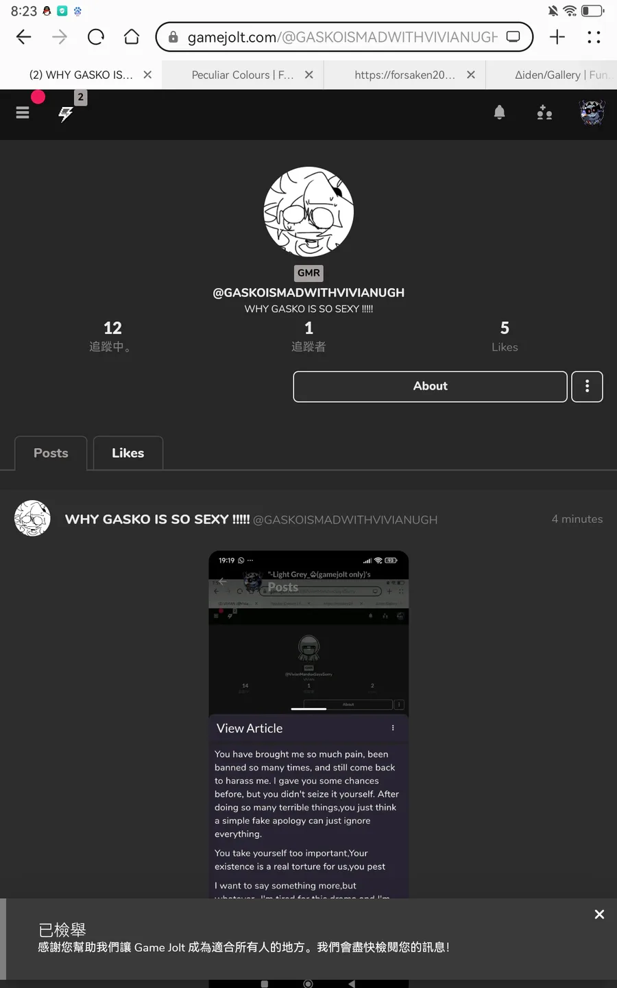 As what you see,he came back and harassed me