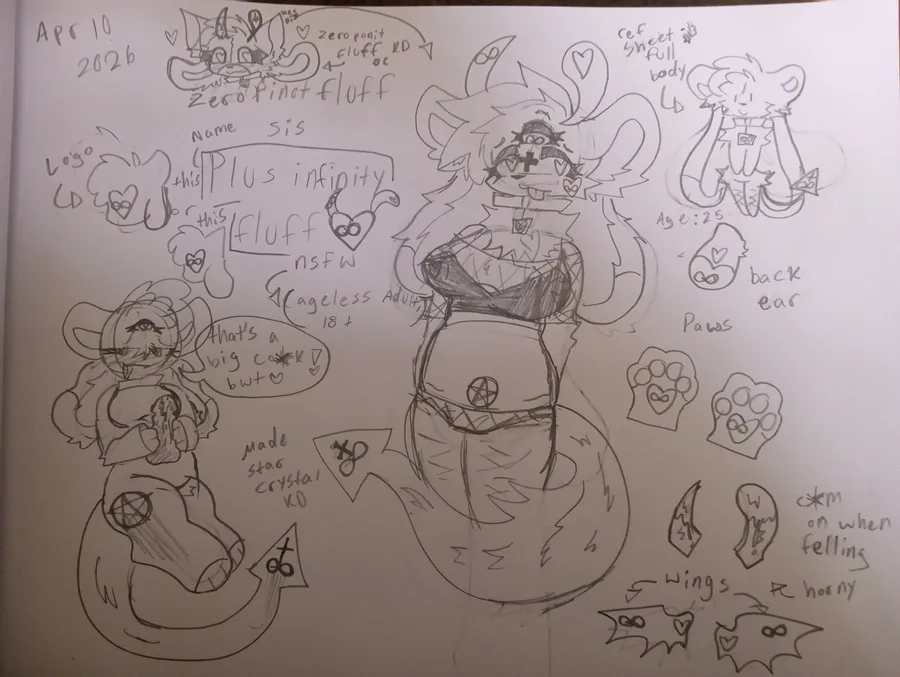 OC by me character name is Plus infinity fluff she/they/he/xe she all go by pronouns and yes she a NSFW OC so don't got mad at me alright okay and she a ageless adult she 18+ but I won't be any wierd art of it okay ^^