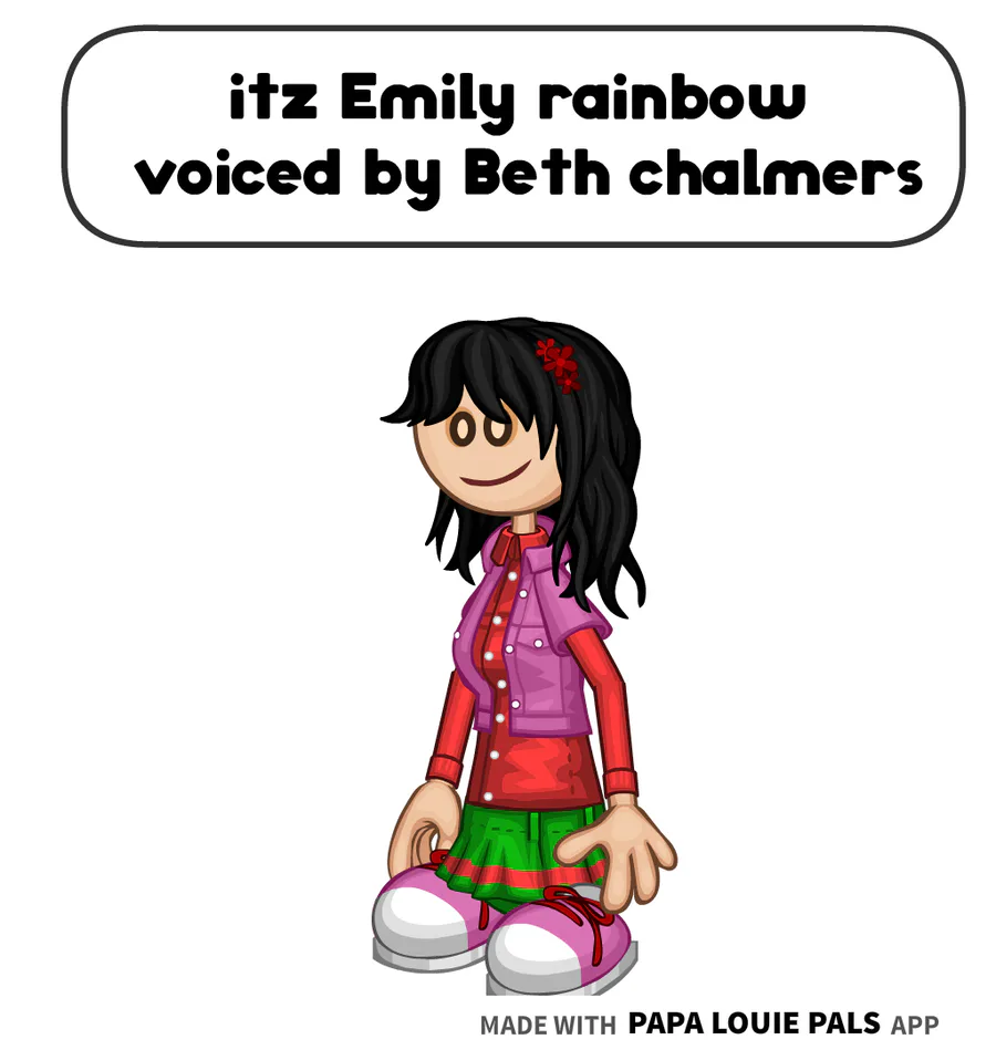 itz Emily rainbow is voiced by Beth Chalmers from the coiny show
