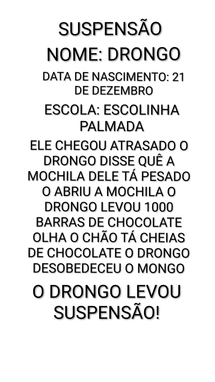 O DRONGO LEVOU SUSPENSÃO NA ESCOLA