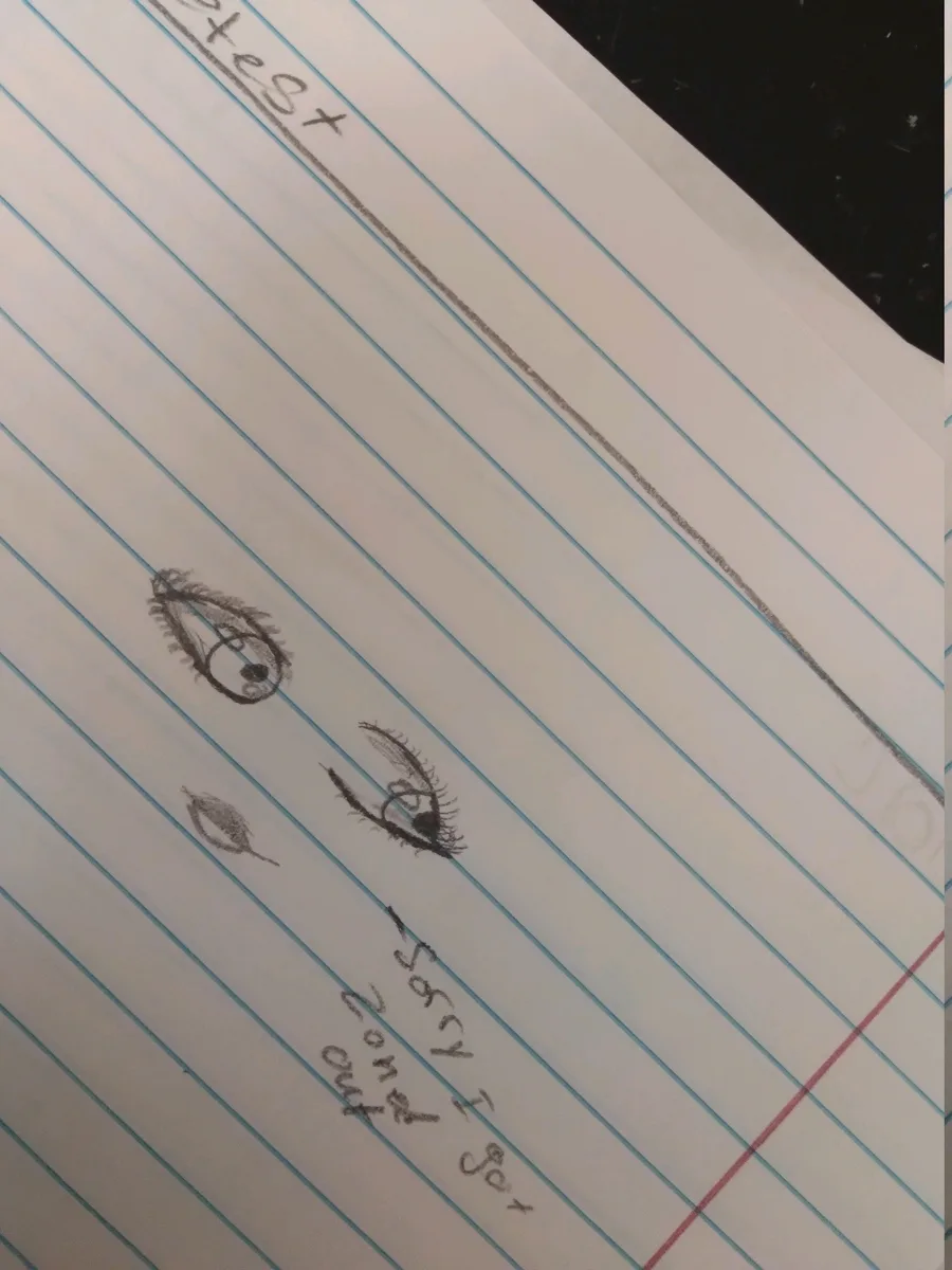 So I got zoned out in class.😅 and I wrote a litre note.and she said that she loves my art