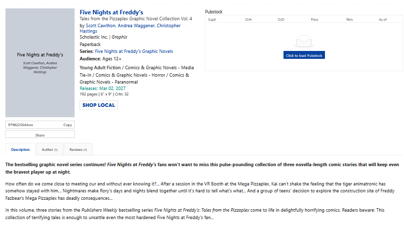 Tales from the Pizzaplex Graphic Novel Collection Vol. 4 has been delayed, with the physical version releasing on March 2nd, 2027, and the e-book releasing on March 16th, 2027.
