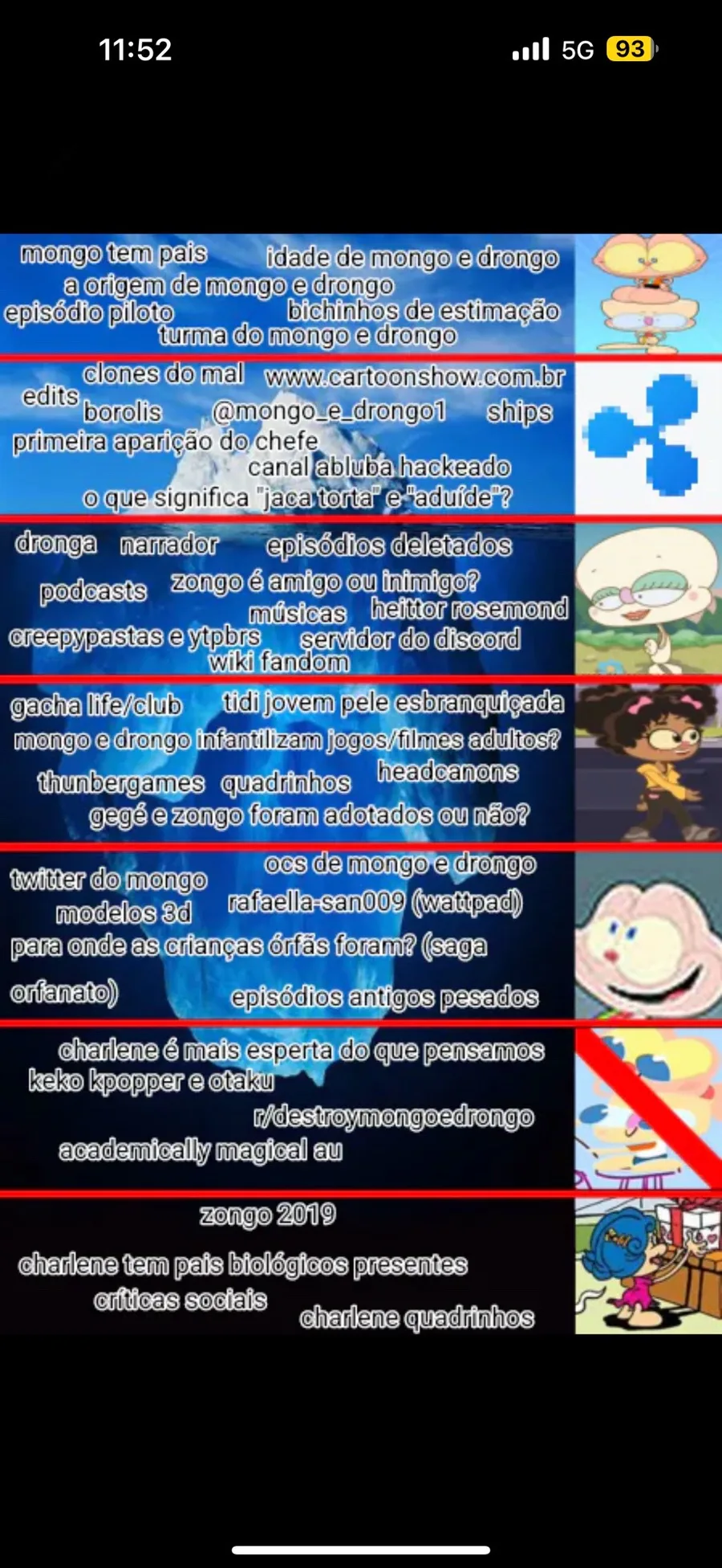 há muitas coisas que eu n entendi desse iceberg de mongo e drongo