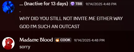During the 2 months I spent with her it was accident after accident with her let alone the fact she's notorious for causing problems and having dumb fucks like myself clean up her messes without a second thought. She's also incredibly micro-managey to an unhealthily and feverish level let alone having strict ways on how to play something like Guest 1337 in Forsaken saying that he can only be played as a Sentinel when that's not the case. Her way of articulating this point is also extremely corrosive in nature to the point where I thought I did something wrong.