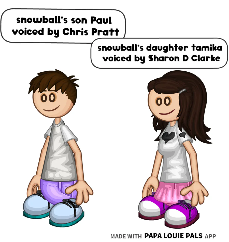 snowball's son named Paul is voiced by Chris Pratt snowball's daughter named tamika is voiced by Sharon D Clarke