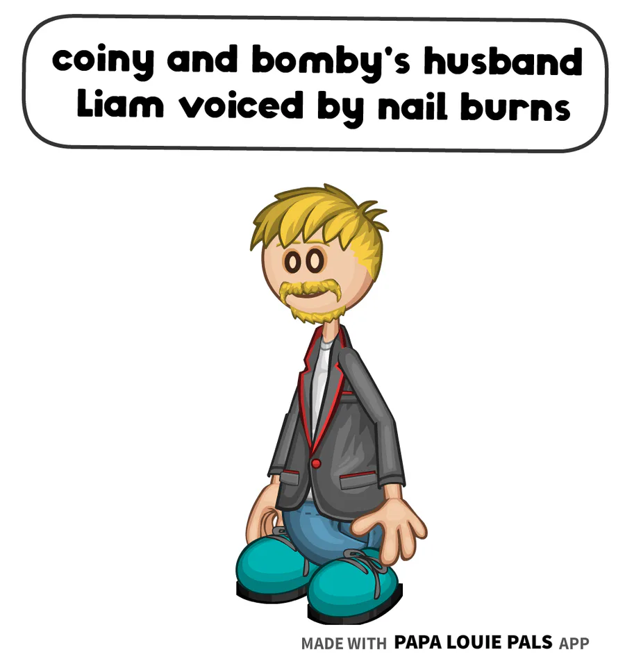 coiny and bomby’s husband Liam is voiced by Nail burns