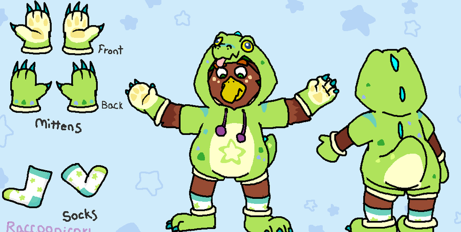 Lol new silly outfit for Poor Hubert. a dragon dino like kigurumi