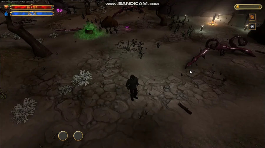 Some lite tuning (camera, movements, location) and core-features: 1. contact damage system and obtacles - thorns, poison geyzers with post effects 2. "Magic vision" - temporary highlights an interactable objects 3. health and mana restoration pools