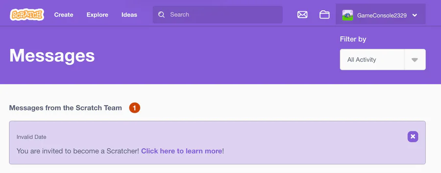 For some reason the scratch team were inviting me to become a scratcher, but I was already a scratcher since 2022, this might’ve been a glitch or something