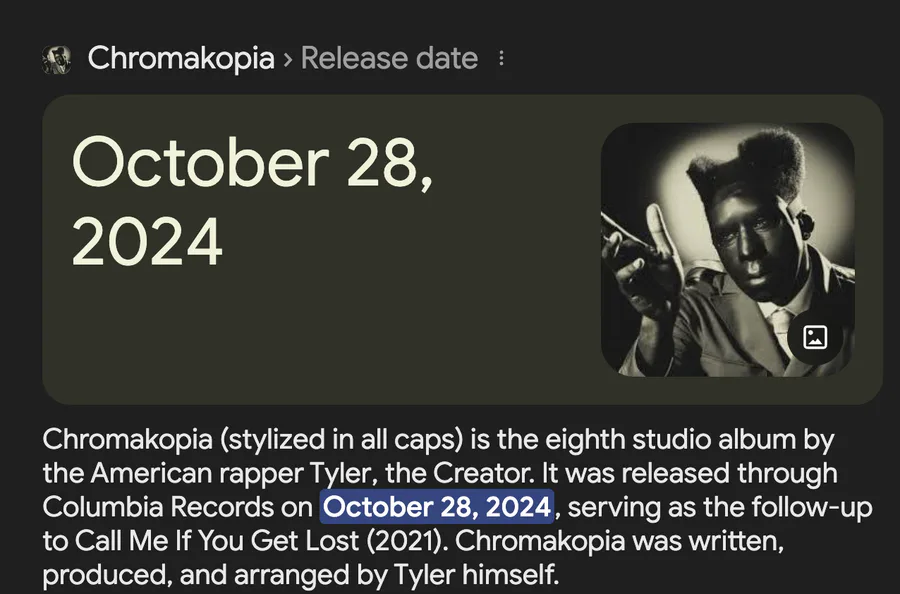 Happy 1 years of Chromakopia that Tyler, the Creator made 💚🖤