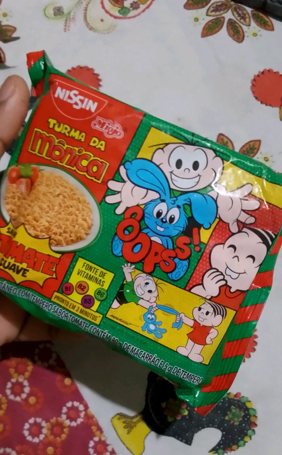 Eu comi esse miojo da turma da mônica sabor tomate e é muito bom!!
