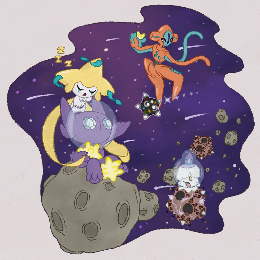 Right Now, Were On Some Astroids With Jirachi, Litwit & Sableye, As We Came Across An Bunch Of Minior, However We Spotted The Legendary Deoxys As For Now, We're On Hot Pursuit On The Pokemon, Let's Just Hope We Don't Get Any More Trouble Like Always.... *Cut To Black"