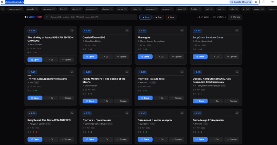 https://depox.cloudpub.ru/ сайт триколора, можете зарегаться если хотите (и голосовать кстати игры тоже можно)