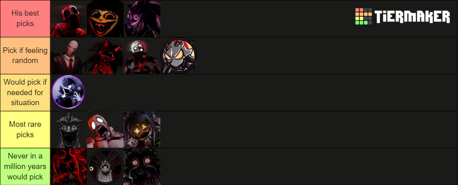 Formant's tierlist on who MakeRone would personally pair himself up with if a hypothetical double trouble mode was canon to Camp Cataclysm
