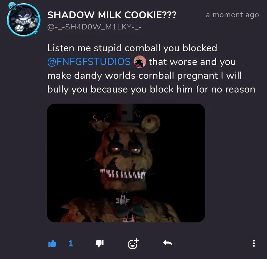 Bro stupid think he creepy horror can scare woman @FNFGFSTUDIOS ![]()