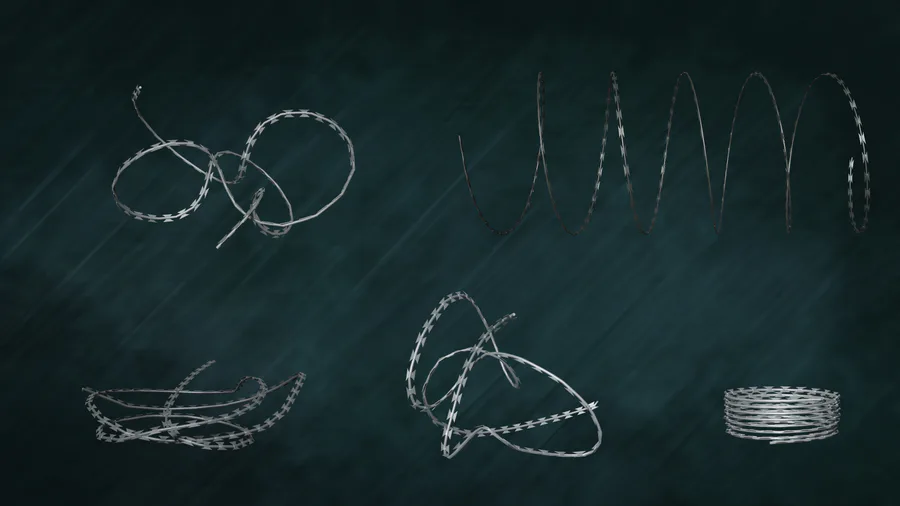 TimeLapse - Render Wire Barbed Concertina Series Metal Curl G2 N1. #b3d, #blender, #Unity, #game, #wire, #barbed, #props, #wireprops, #curl, #wireConcertina.