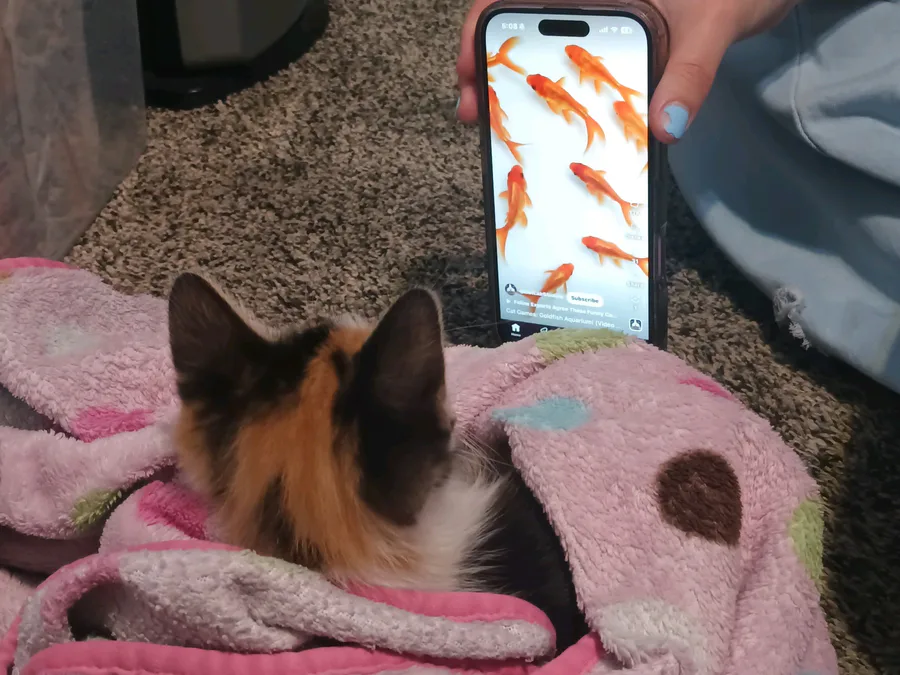 Here is my sis the cats her name is Gigi she is watching fish doing something