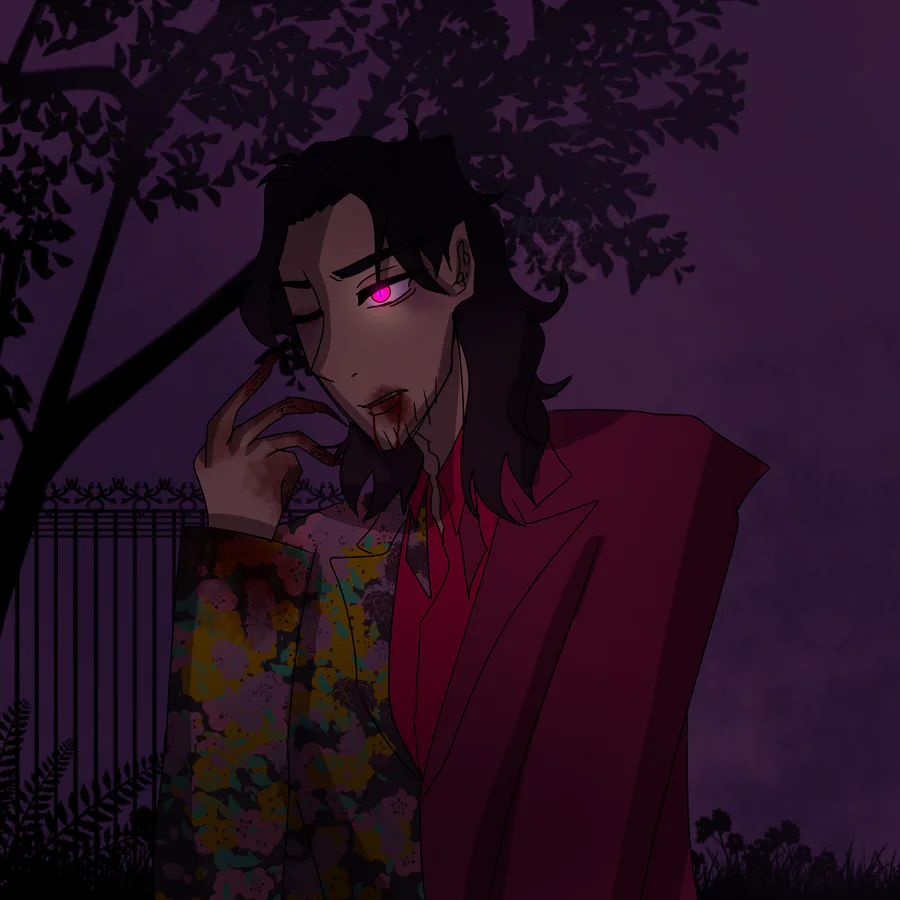 In this version, Mizz is an unique human with a curse. In the world this takes place in, instead of being mammal-originating species, humans are a set of complex fungus (i got this idea from a timeline video where this is what humans are in a parallel universe). Mizal isn't like that, he's rather something similar to a human, who has originated from the flora complexity. Being a rare specimen, he is often shunned by the common people, to the point that he, instead of being blessed supposedly like the former people of his origins, he is cursed. Cursed into being one who feeds on the rotten. Something a flower as beautiful as he is shouldn't be capable of doing. Something that not one flower is sent to the other human world to do.