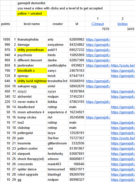 gamejolt demonlist returns(this time as a spreadsheet)