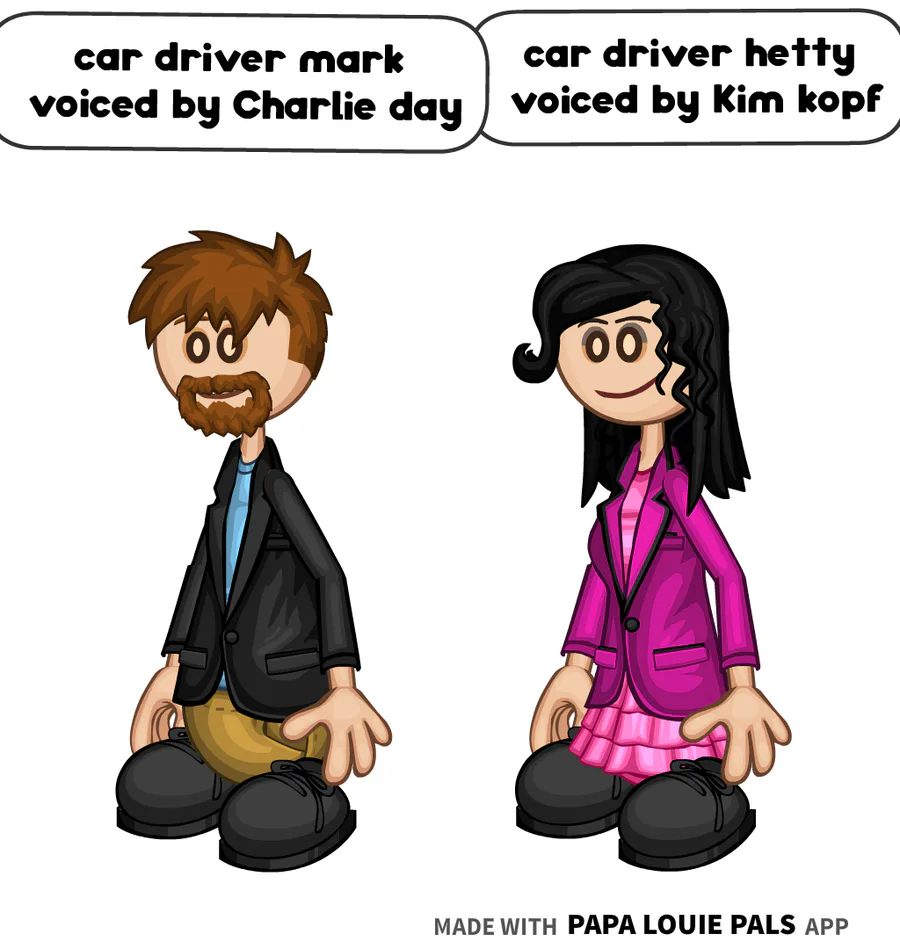 car driver mark is voiced by Charlie day car driver hetty is voiced by Kim kopf from the coiny show