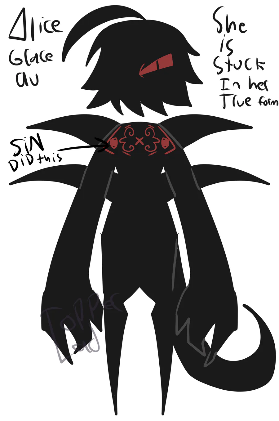 She is stuck in her true form after kinda sacrificing herself in zen to help Oliver so SIN branded her (geez)