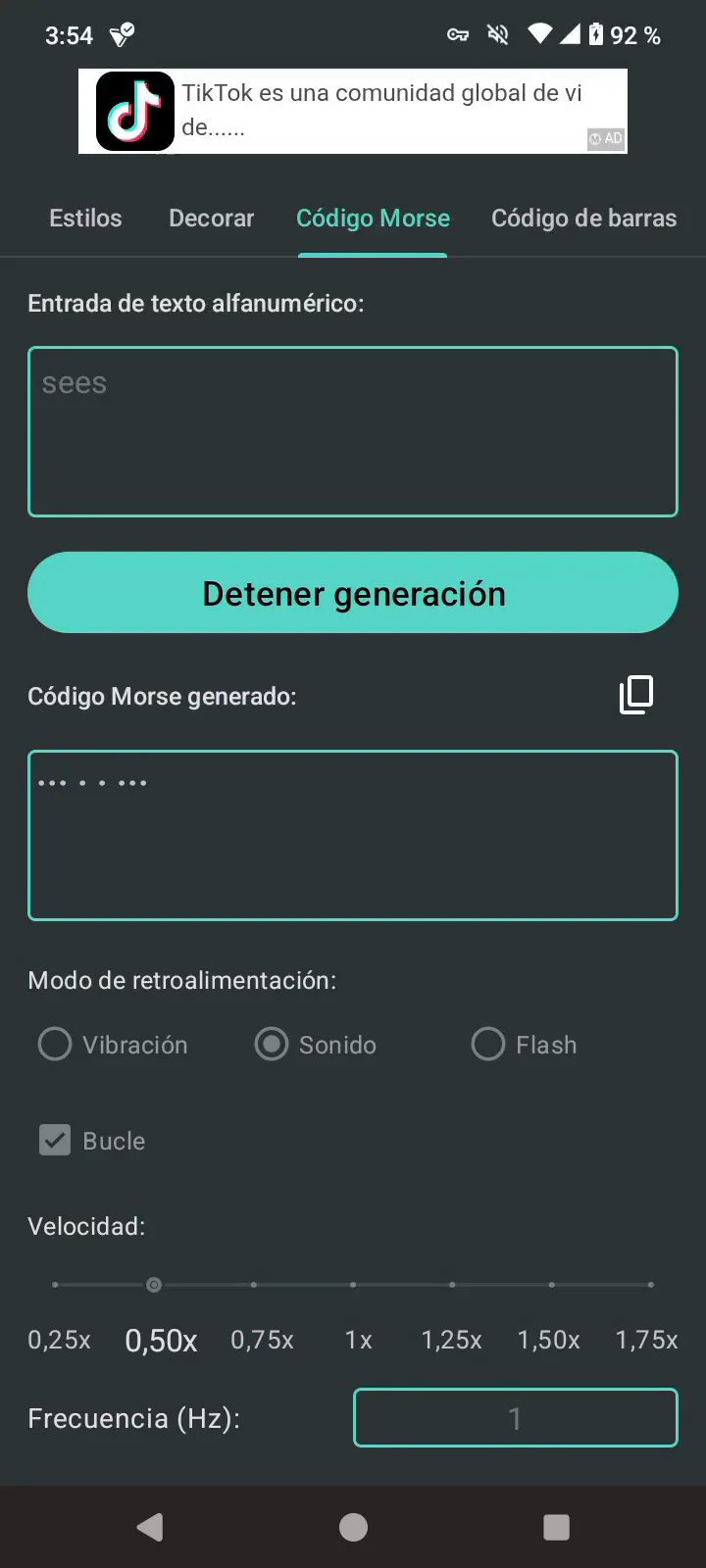 TLDR: i decided to just type "sees" in morse code and set the frequency to 1 hz. enjoy... or not, idk