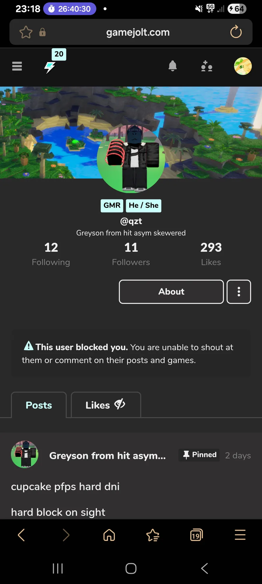 Idk why they blocked me probably cause i didnt follow me
