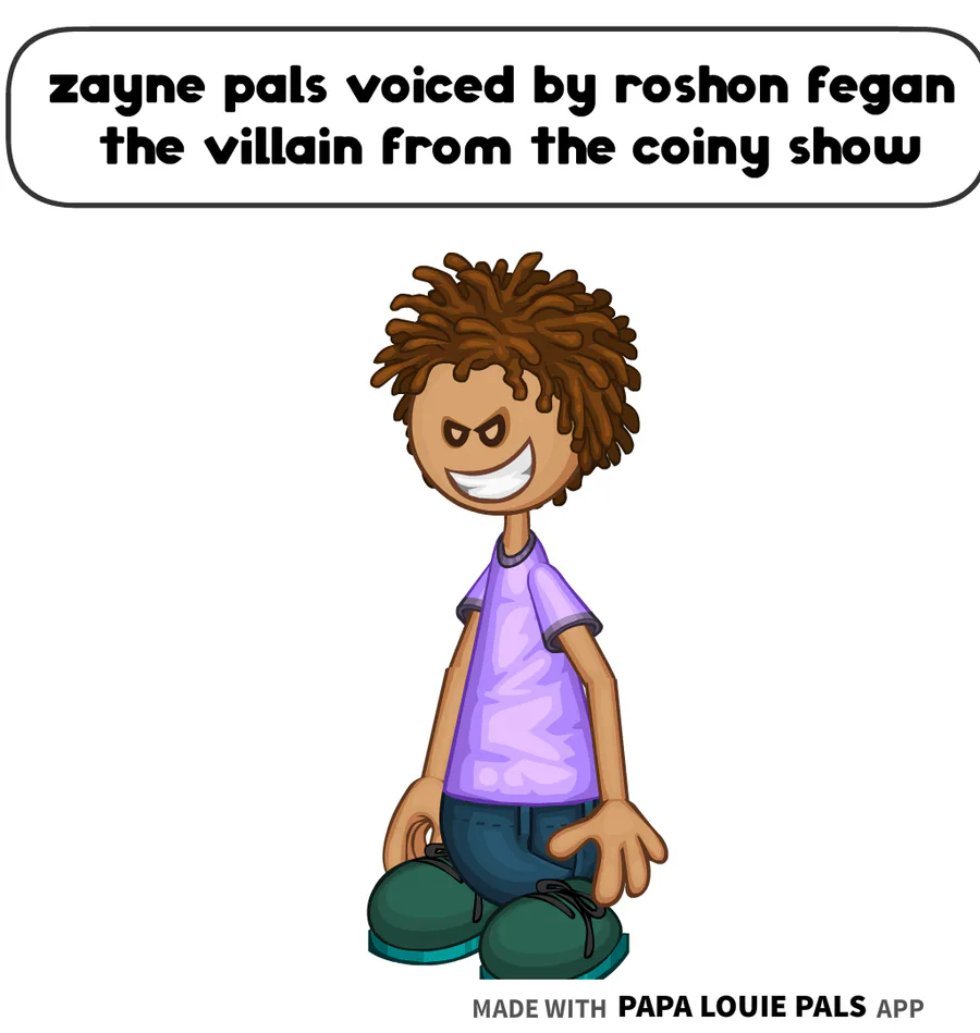 zayne pals is voiced by roshon fegan the villain from the coiny show