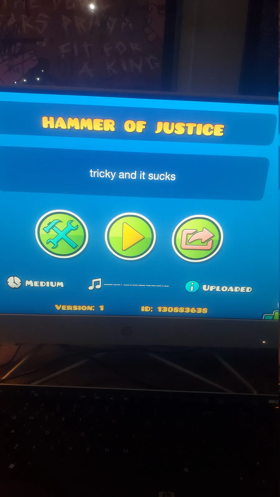 I'm uploading my level search hammer of justice it's made by jobe9757 cuz I failed the name