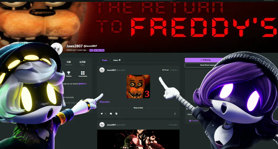 , he makes cool FNAF renders and likes shit that's peak.