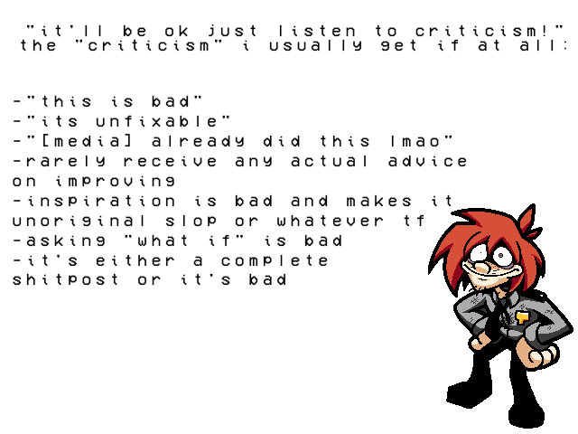 the criticism i usually get(when i get any at all) in a nutshell