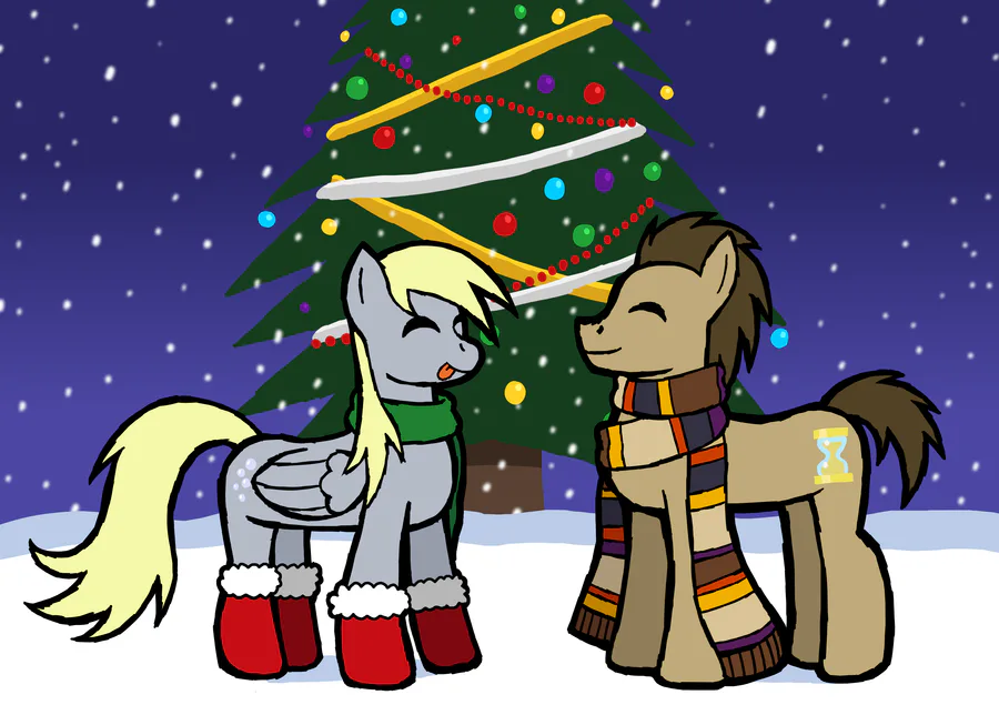 (In Ponyville, Both Derpy And Dr.Hooves Are Having An Great Time On Christmas Day. With Snow And An Big Christmas Tree, This Sure Be The Best Day Ever.)