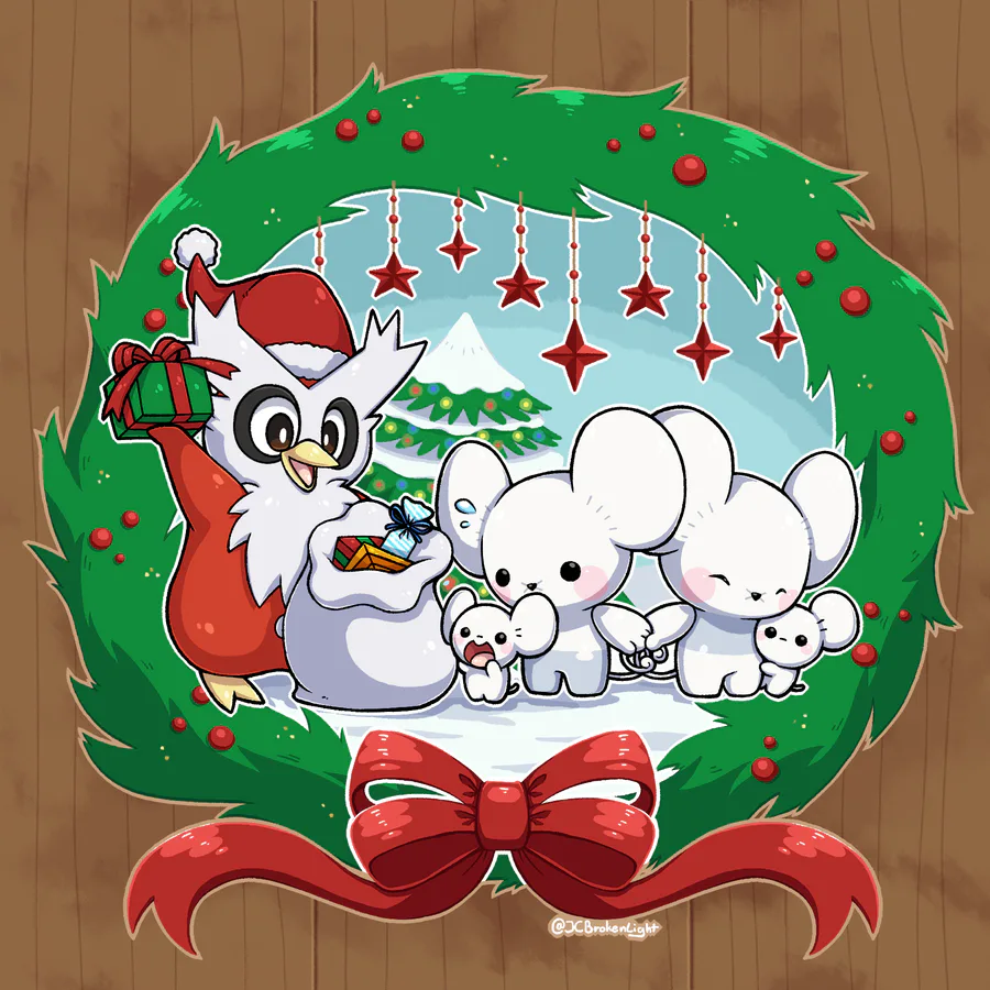 (Here Something To Cheer For As Delibird Deliver Presents For An Family Of Maushold.)