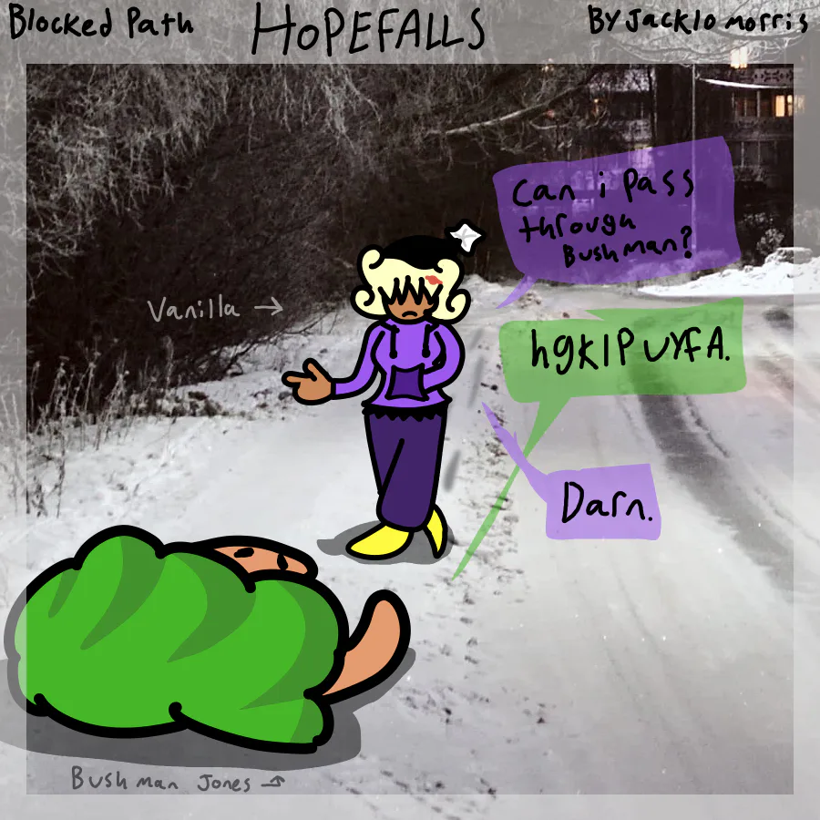 Blocked Path -- created 16-Feb-26 characters included in order: Vanilla Valentine