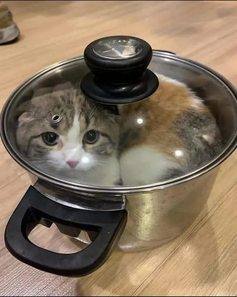 why he in the pot! ! stupid cat